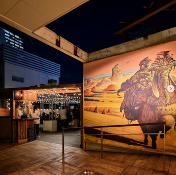 屋上に広がる開放的な空間にある「空のアミューズメントパーク」がビアガーデンのテーマ。メリーゴーランドやエスニックなアートなど、ポップでフォトジェニックなフォトスポットを多数用意しています。