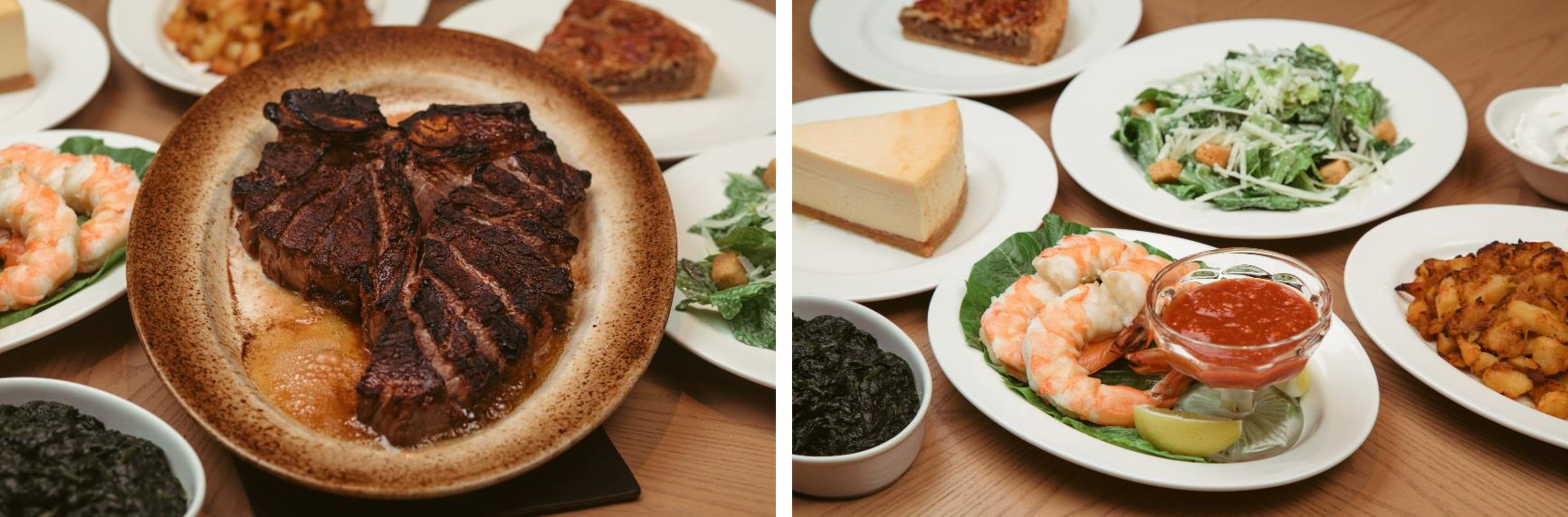 ※定番メニューセット:シーザーサラダ、ジャンボシュリンプカクテル、クリームドスピナッチ、ジャーマンポテト、ピーカンパイ、チーズケーキ