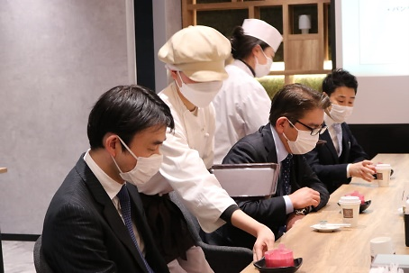 その後、カッパ・クリエイト㈱商品開発部との共同開発を通じて、かっぱ寿司としての商品化を行い、今回全国のかっぱ寿司で販売いたします。
