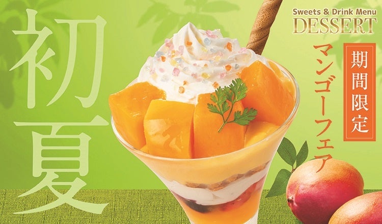 国内197店舗を展開する「和食さと」では、完熟のアップルマンゴーを使用した「マンゴーパフェ」や「チーズタルト」、「ドルチェ」など、初夏の訪れを感じる新デザートを期間限定で販売します。