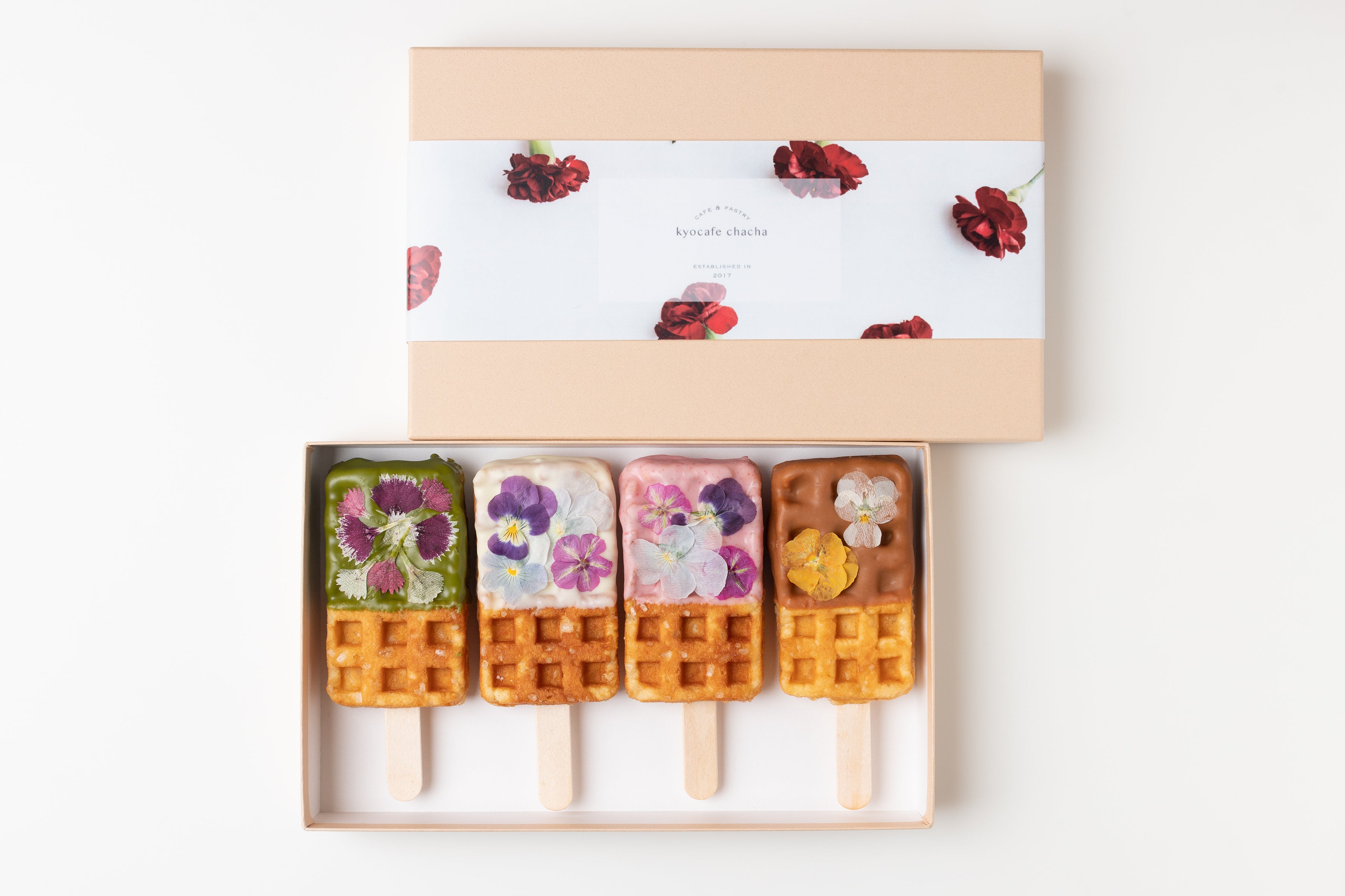 2017年4月より京都で運営しているワッフル専門店「kyocafe chacha」では、可愛くって食べやすいバータイプの新感覚ワンハンドスイーツ「京ワッフル」を販売しております。