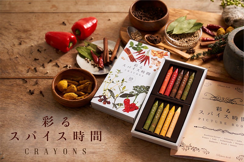 生徒がプレゼンテーション準備で使っていたのは、ハウス食品グループが、製品に適さないスパイス原料を有効活用し作られたクレヨン『彩るスパイス時間CRAYONS』(※)。