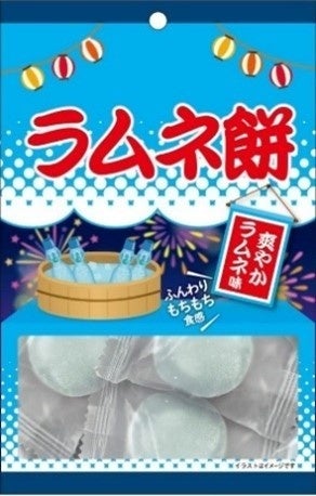 商品特徴:縁日のラムネをイメージしたふんわりもちっとしたマシュマロとラムネペーストを包んだおもちです。
