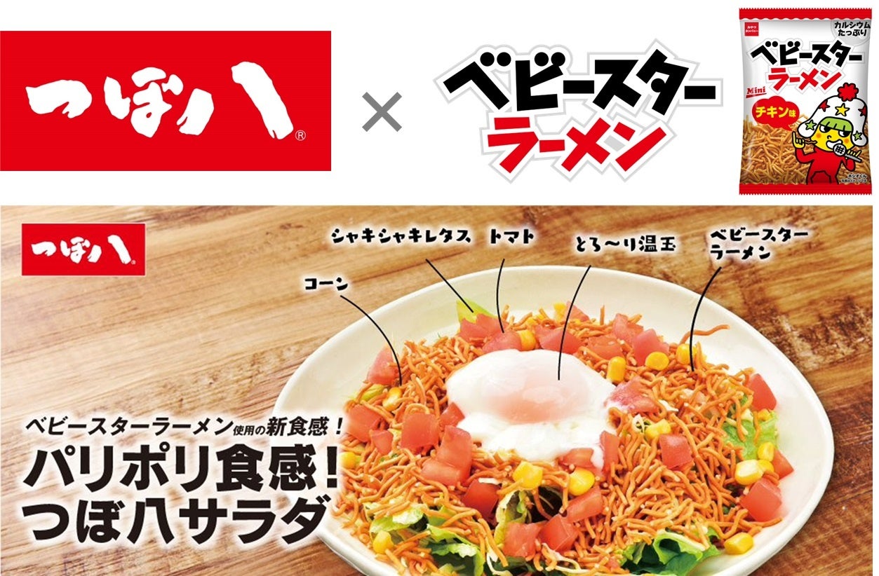 「つぼ八」で楽しめるベビースターで変身した絶品“おつまみサラダ”をこの機会に是非、お楽しみください。