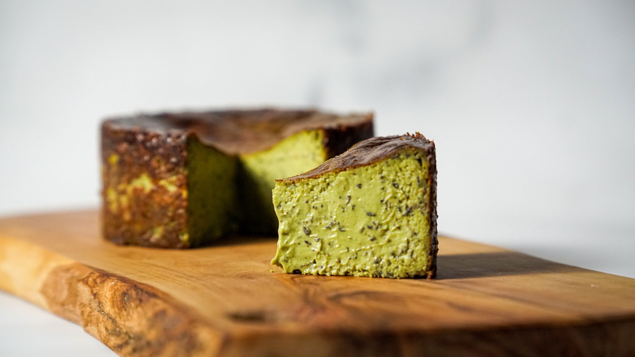 トリュフが芳醇に香る、トリュフ専門店のチーズケーキ 濃厚な抹茶の上品な渋みとさわやかで品のある香りを纏わせ、黒トリュフの香りと合わせました。