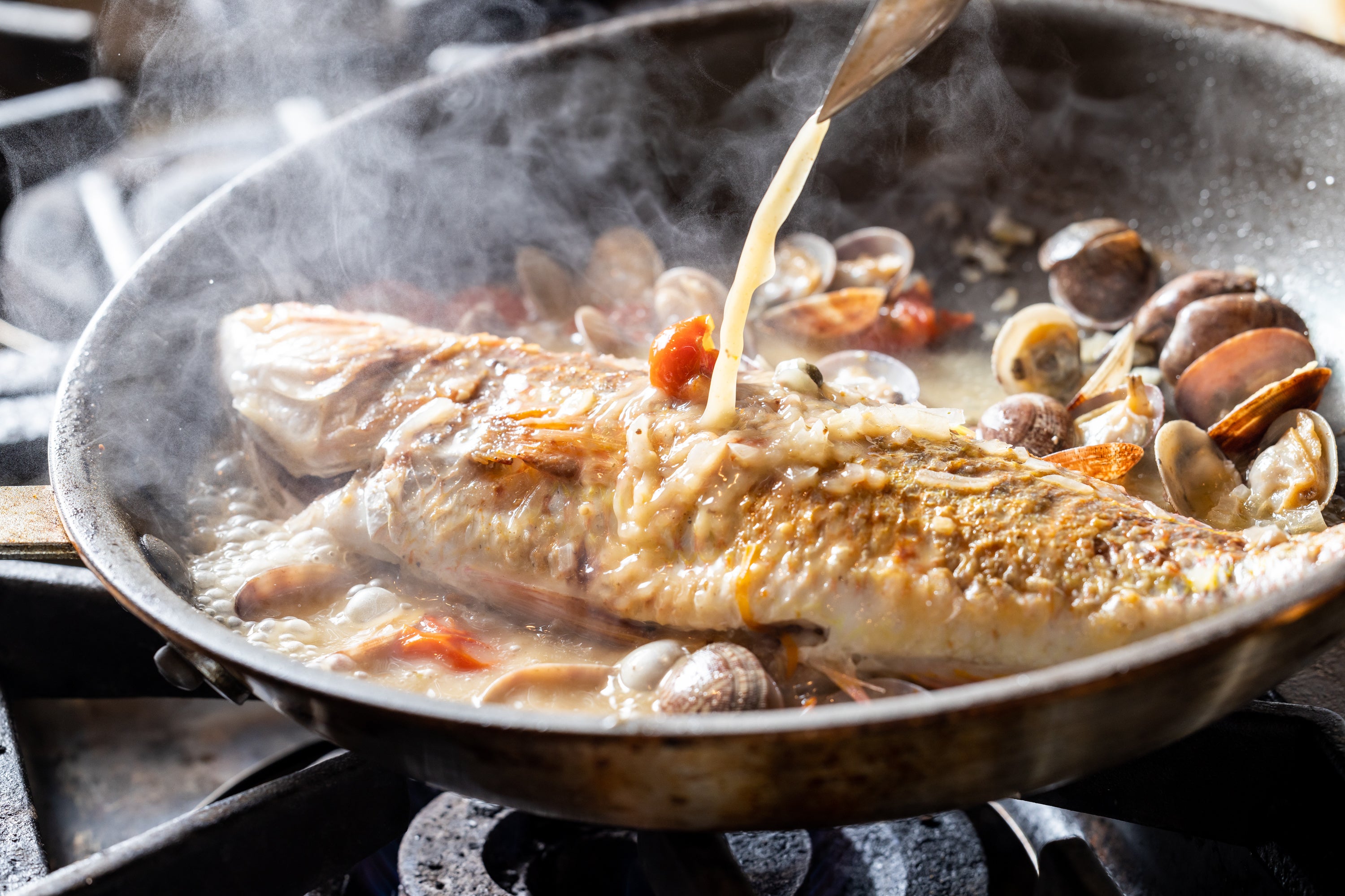 メインカウンターにはアイスベッドを設置し、当日届いた新鮮な海の幸を直接選び「アクアパッツァ」や「グリル」等の調理法を選んで、自分だけのカスタマイズされたオーダーをお楽しみいただけます。
