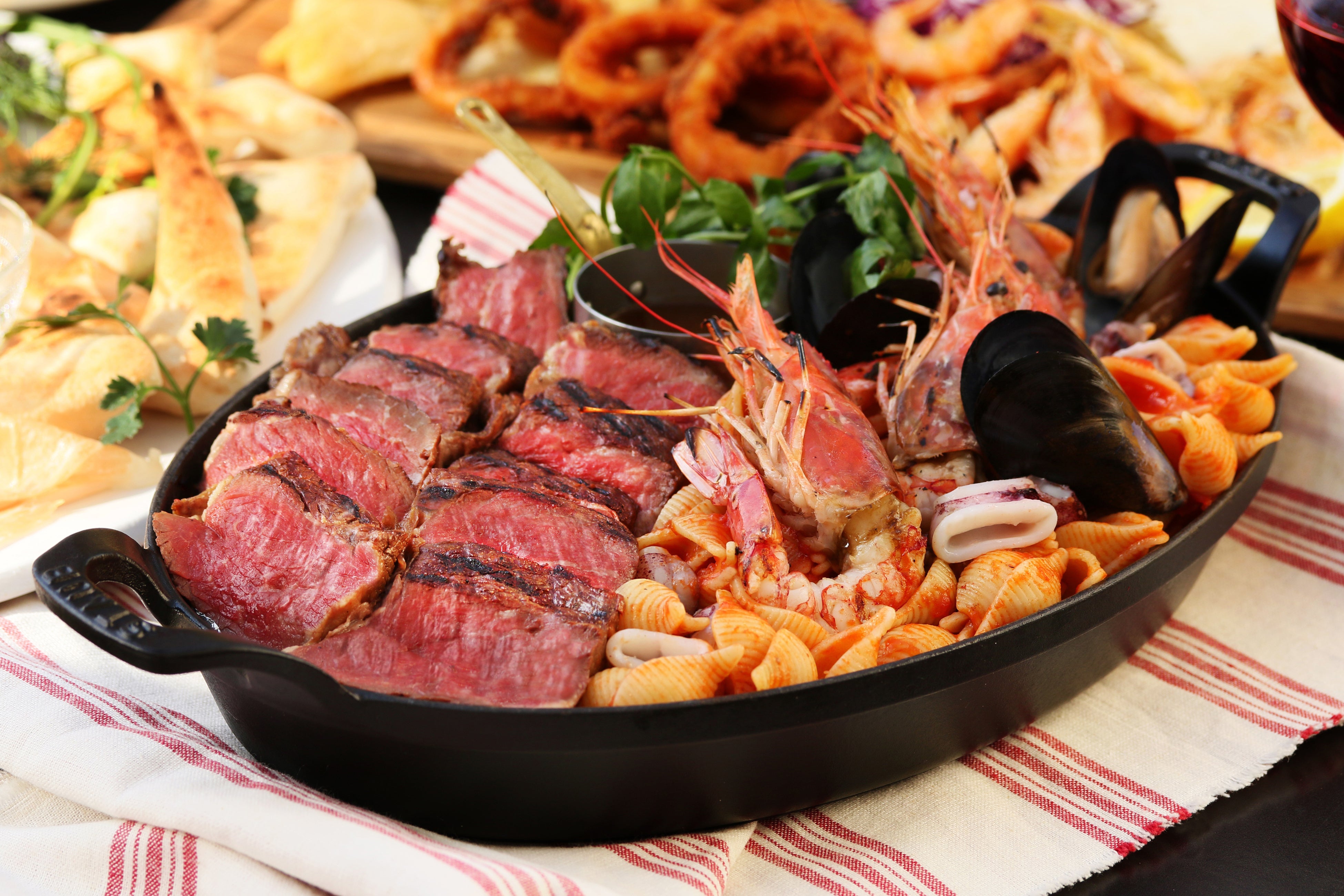 華やかなアンティパスト・フリット・タコスから、メインにはサーロインステーキ、デザートにカップドルチェと、しっかりとお食事をお酒をお楽しみいただけるラインナップ。
