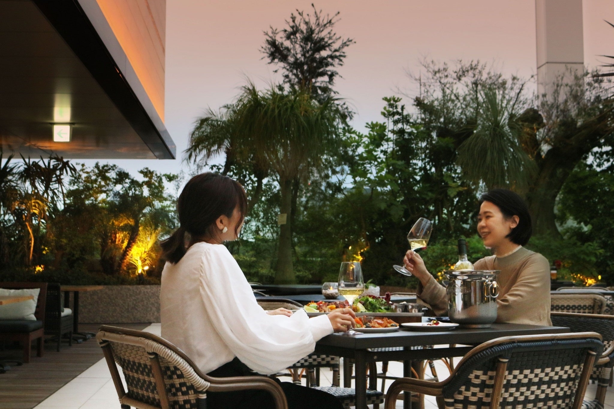 世界を旅するプラントハンター「西畠清順氏」プロデュース “アトレ空中花園” を望む、光と緑に囲まれた開放感溢れる絶景のテラス。