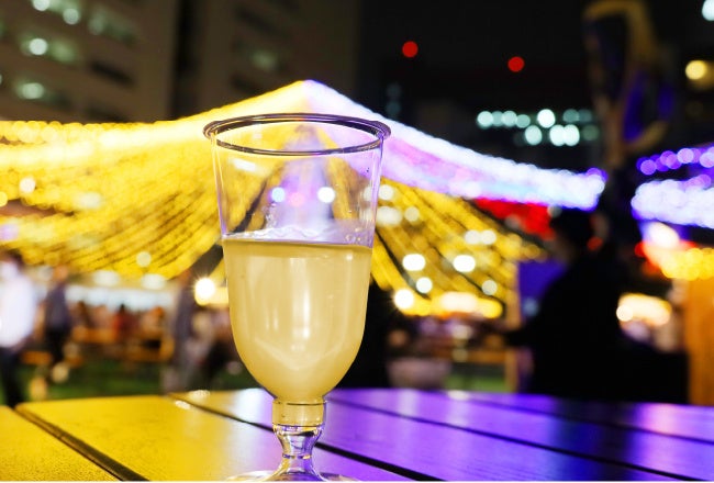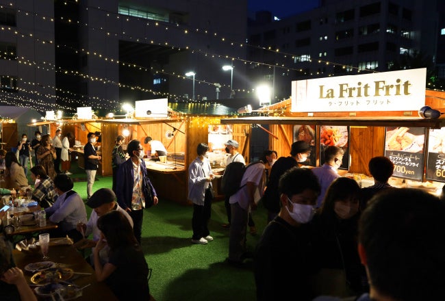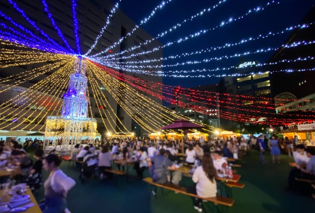 まさにその小洒落た路地裏ワイン酒場の雰囲気を、本場ヨーロッパから直輸入したヒュッテを設置し、さらに夜空に広がる光のフランス国旗で非日常の空間を演出します。