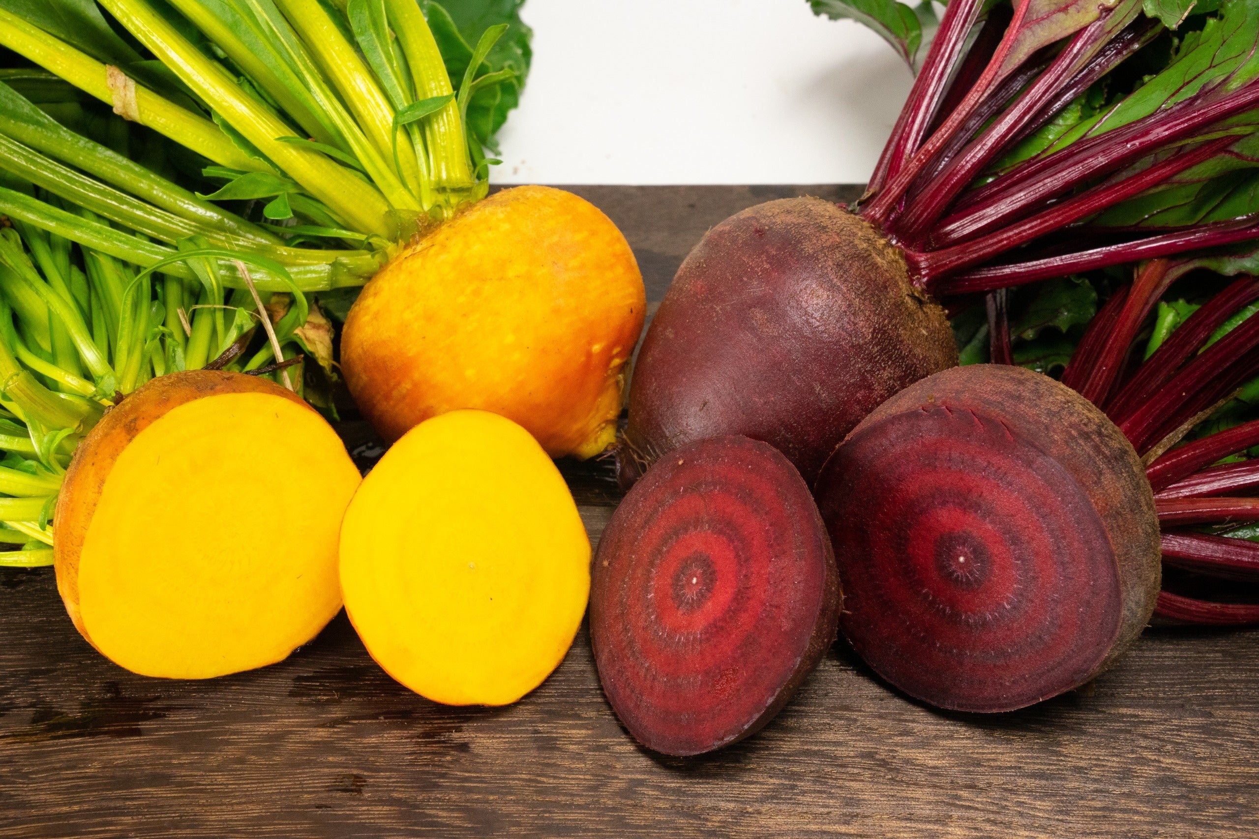 ルナ、ソーレは、いずれもイタリア原産のビーツで、ルナは中が鮮やかな黄色、ソーレは濃い赤紫色をしているのが特徴です。ルナはイタリア語で「月」、ソーレは「太陽」を意味します。サラダやピクルスの他、鮮やかな色を生かしたソースにも最適です。この2色のビーツをコンビに見立てて「月と太陽」というブランドで販売をしていきます。