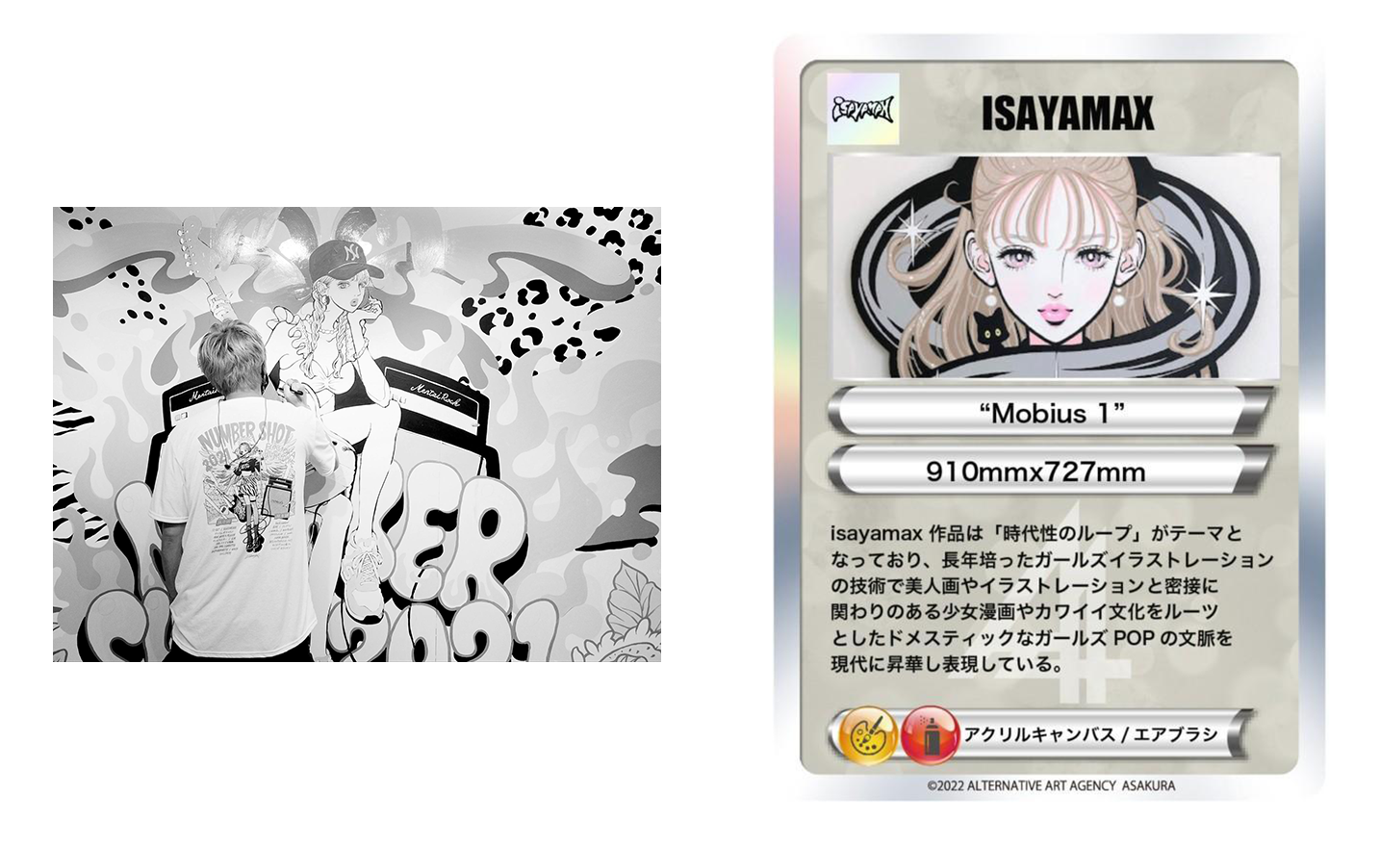 デザイナー・イラストレーターとして10年ほど経験後、2015年頃からinstagramにオリジナルイラストの投稿を始め、2019年には東京原宿と大阪梅田にて個展を開催。isayamax作品は「時代性のループ」がテーマとなっており、長年培ったガールズイラストレーションの技術で美人画やイラストレーションと密接に関わりのある少女漫画やカワイイ文化をルーツとしたドメスティックなガールズPOPの文脈を現代に昇華し表現している。