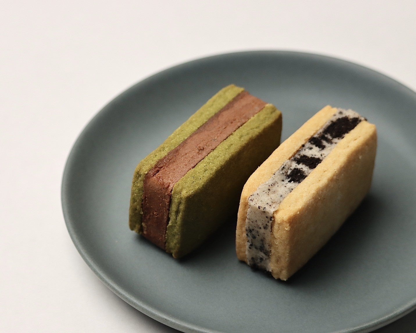 THE TOKYOの「バターサンド」は2種類の6個入り。増田園の日本三大茶のひとつである狭山茶を贅沢に入れた香り高いクッキーに、濃厚かつなめらかなココアクリームをサンドした「グリーンティーココアクリーム」、濃厚なバニラ風味のクリームに、オリジナルのほろ苦く香ばしいココア風味のクッキーを砕いて入れた、王道の「クッキーアンドクリーム」。いずれもヴィーガン、グルテンフリーになります。オンラインストア「THE TOKYO BASE」でご購入頂けます。オンラインストアでは、他にも期間限定さくらフィナンシェや、人気No.1のパリジェンヌなども揃っています。