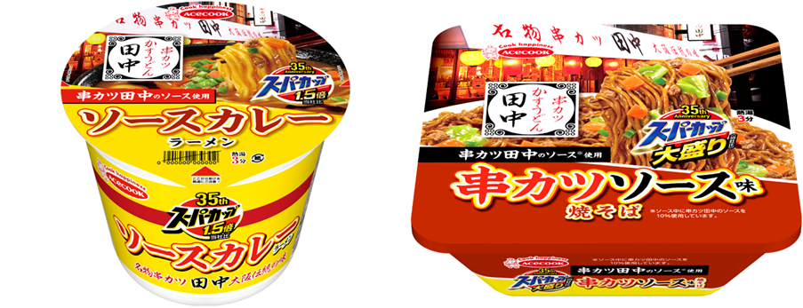 株式会社串カツ田中ホールディングス(本社:東京都品川区東五反田、代表取締役社長:坂本 壽男)は、2023年4月17日より、エースコック株式会社(本社:大阪府吹田市 社長:村岡寛)とコラボレーションした、「スーパーカップ1.5倍 串カツ田中監修 ソースカレーラーメン」「スーパーカップ大盛り 串カツ田中監修 串カツソース味焼そば」を新発売します。