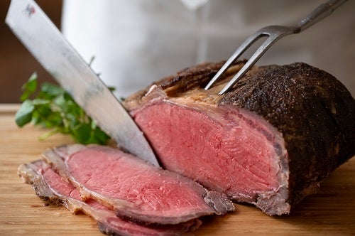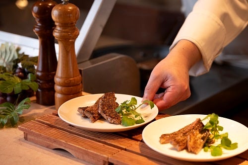 肉料理には、肉汁を閉じ込めて焼き上げたホテル特製ローストビーフや、お客様の目の前で焼くジューシーなサーロインステーキをご提供いたします。