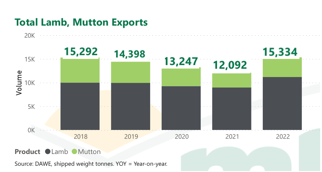 また、オーストラリア産羊肉の日本への輸入量は、2021年の12,092トンから2022年には15,334トンと前年比26.8%となり、需要が高まっていることが伺えます。