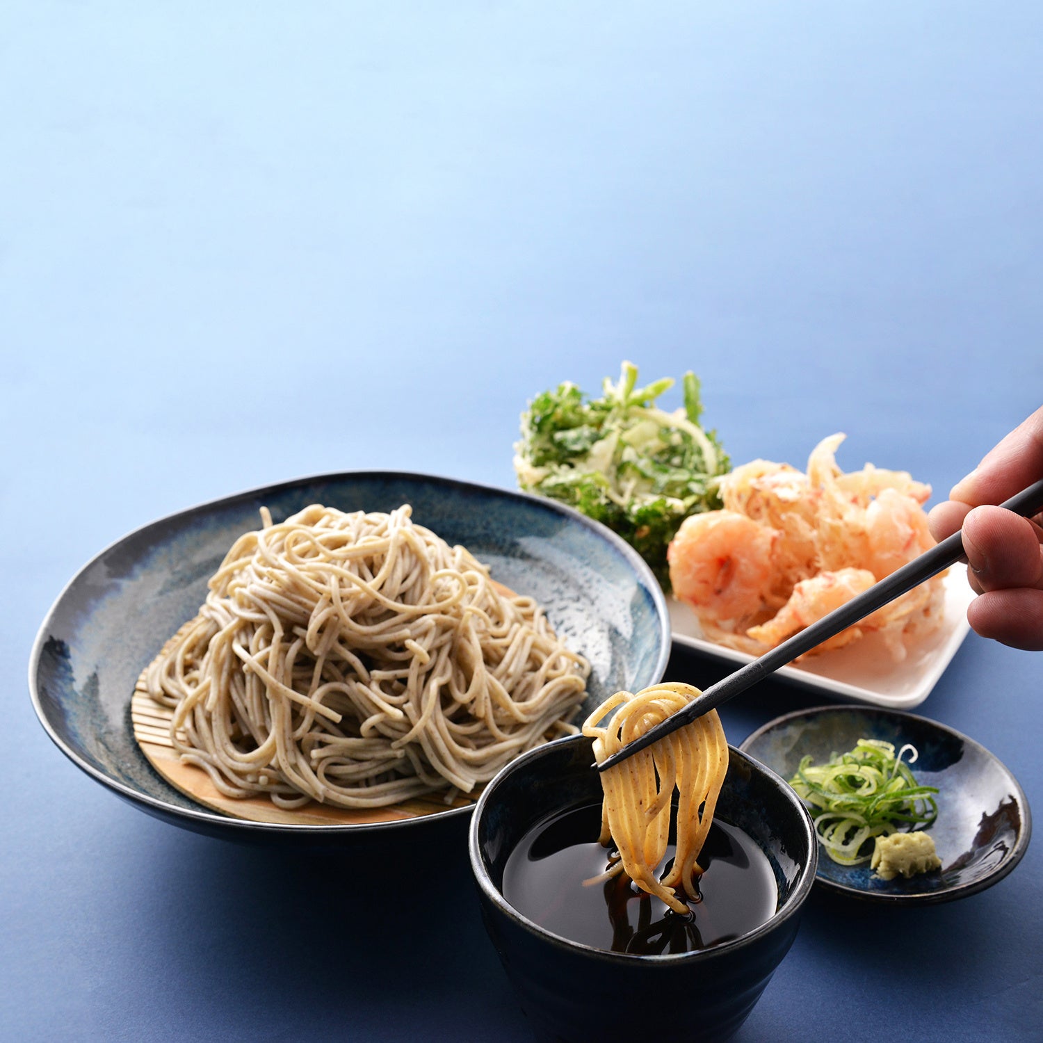 国産のそば粉を100%使用した、つるりとのど越しのよい十割そばに加え、小麦粉でなくそば粉を使用したあっさりと軽い天ぷらをご提供しています。