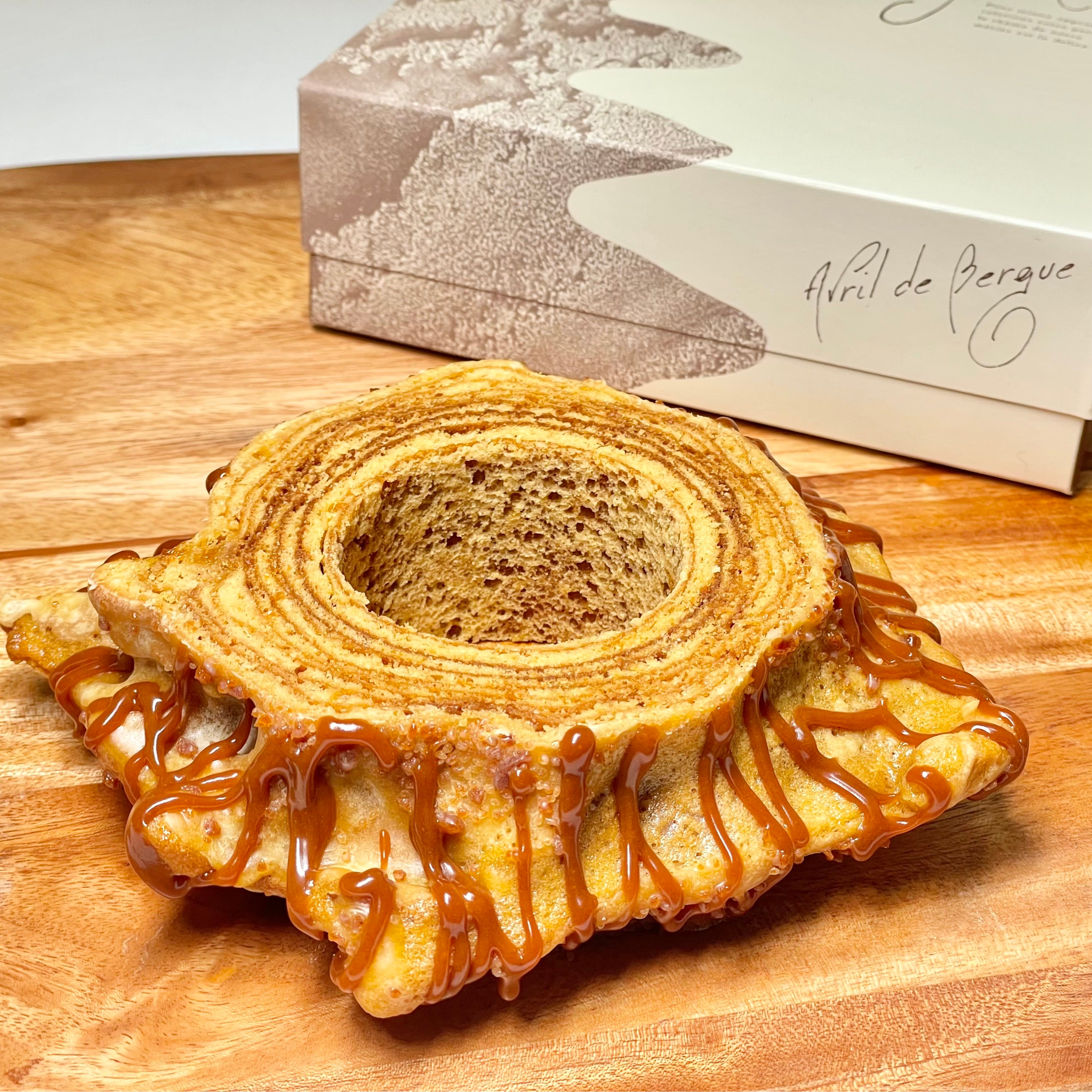 バウムクーヘン博覧会限定商品!国産発酵バターを使用し一層一層丁寧に焼き上げ、外はカリカリ、中はもっちり。発酵バターの芳醇な香りとキャラメルのビターな味わいが、一口食べれば至福のひと時が訪れます。お好みでキャラメルソースをかけてお楽しみ下さい。