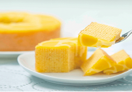 やわらかなメープル風味が香るバームクーヘンの生地の中に、オリジナルのプリンをていねいに流し込みました。メープル風味のふわふわバームクーヘンと口の中でとろけるプリンが一度に味わえます。