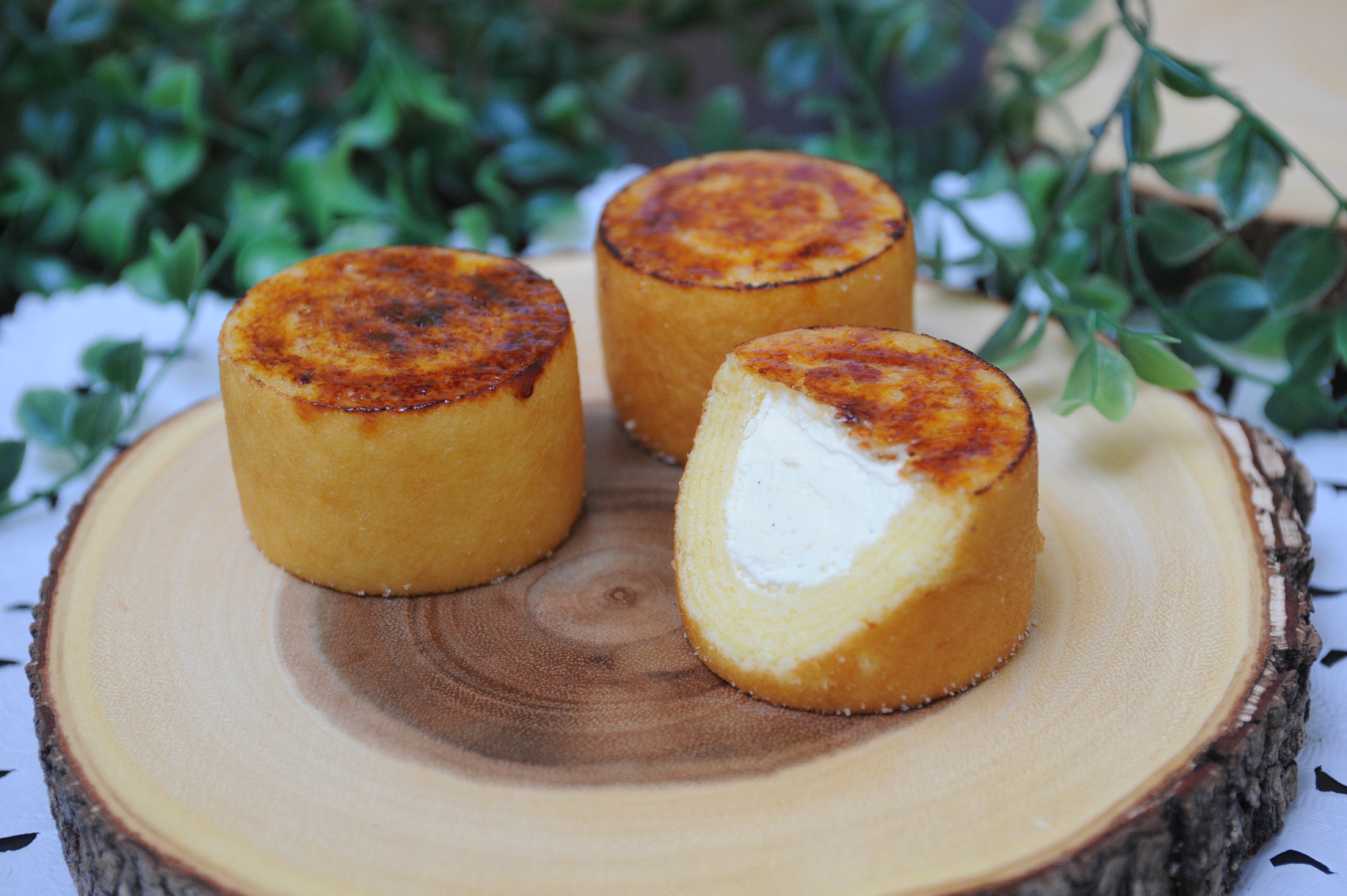 やわらかいバウムクーヘンに口当たりの良いカスタードホイップクリームを詰め込みキャラメリゼしました。