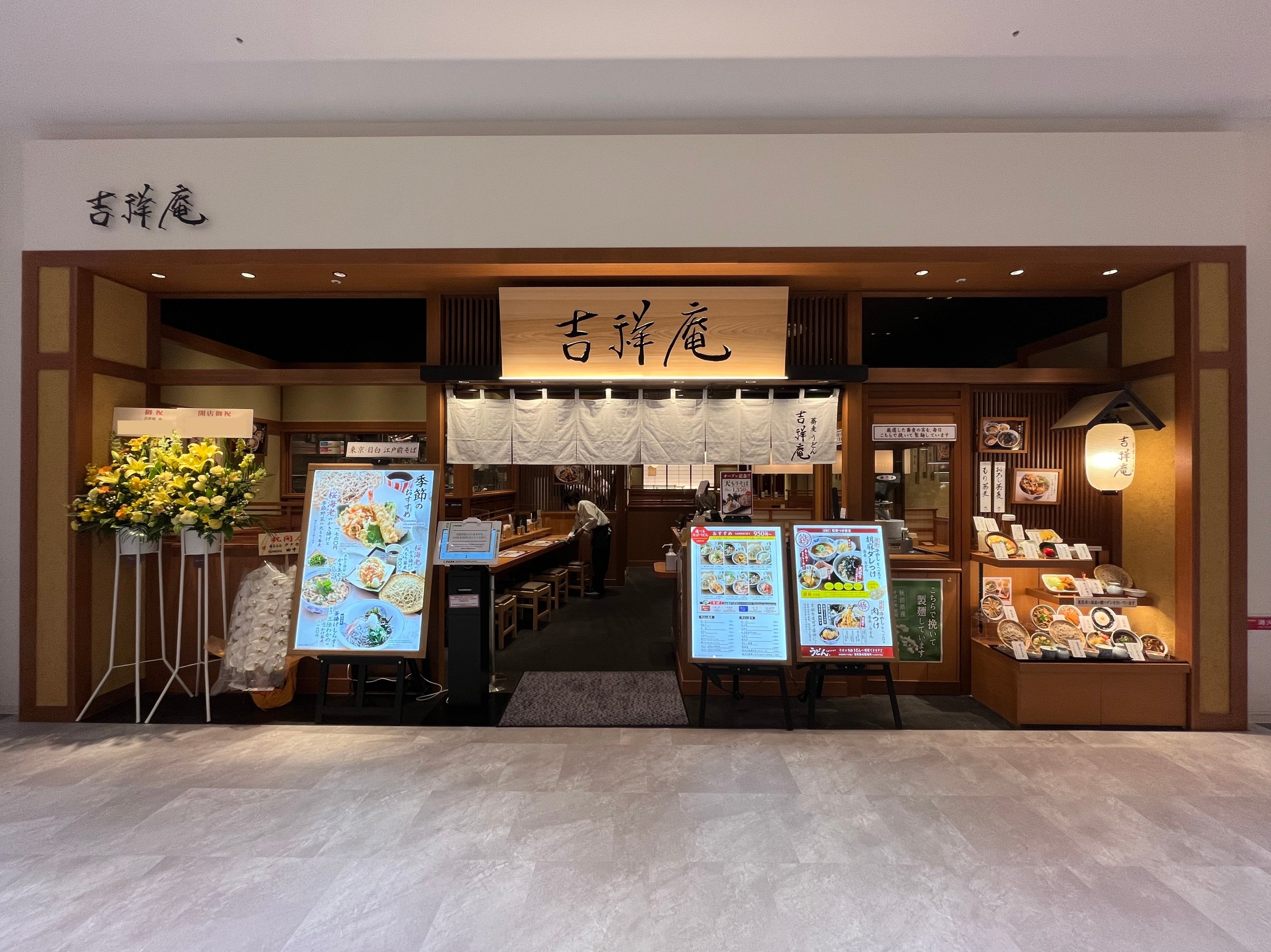 ■老舗のそば屋には入りづらい、本格的なこだわりの味を商業施設でも味わいたい。その二面性を補う、そばやが『吉祥庵』です。昼に「親子丼とそば」や「海老と季節野菜の天そばとアジのたたき 小丼ぶり」などのそばや丼ぶりはもちろん、夜はそばやで一杯を楽しめ、そば以外のメニューも充実を図っており、季節ごとに旬の食材を使用した一品料理 や厳選した地酒もご用意しており、様々なシーンでお使いいただけます。