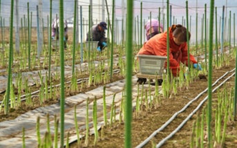 農業に携わりたい想いから元銀行員の藤原氏が、2ヘクタール37棟・北海道最大規模でアスパラガス生育に情熱を注いでいる。十勝産「豚糞」「鶏糞」有機肥料や雪を活用し土にミネラル補給、外気の寒暖差を活用することで伸びるのが早く、色味が綺麗で甘く柔らかいアスパラガス。