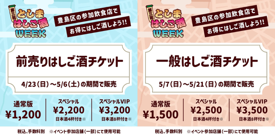 チケット種別、料金に関しては下記の【としまはしご酒WEEK参加方法】をご確認ください。