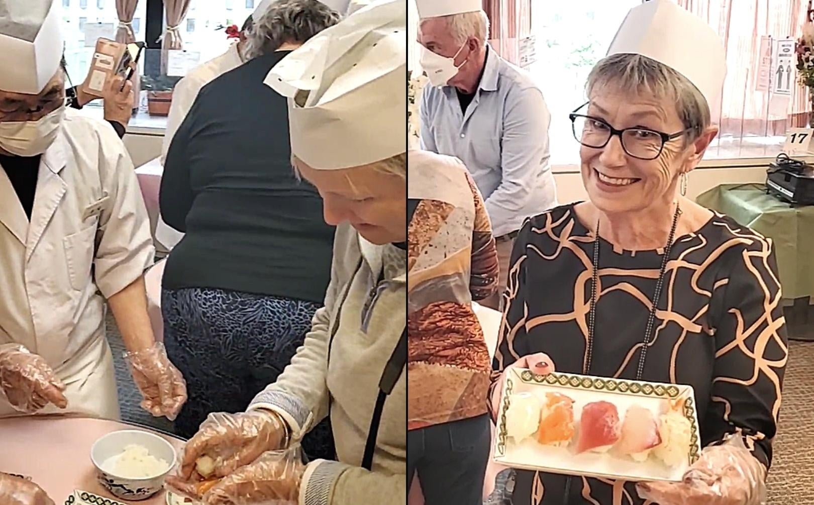 そして、実際に、和帽子を被って『握り寿司』作りにチャレンジ!
