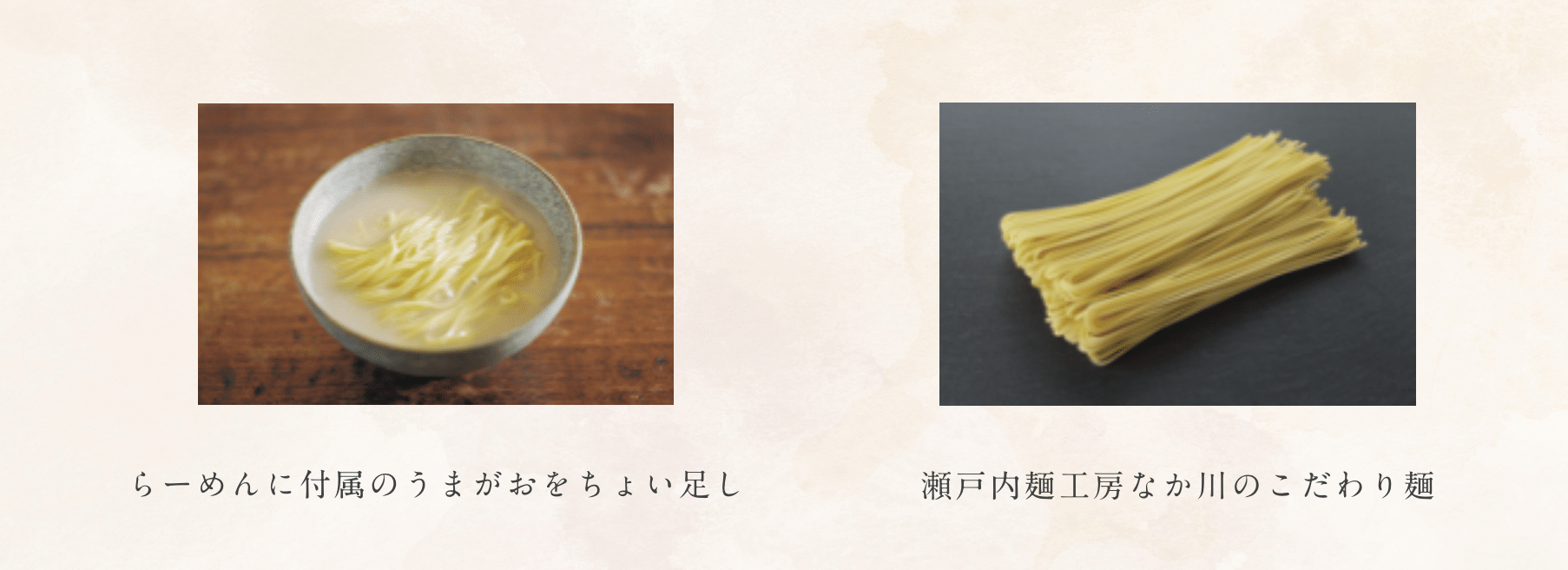 広島で70年以上製麺を営む老舗なか川の熟成半生麺は、うまがおらーめんのスープによく合います。