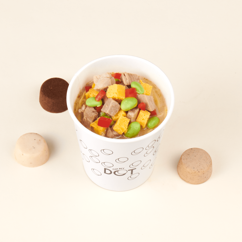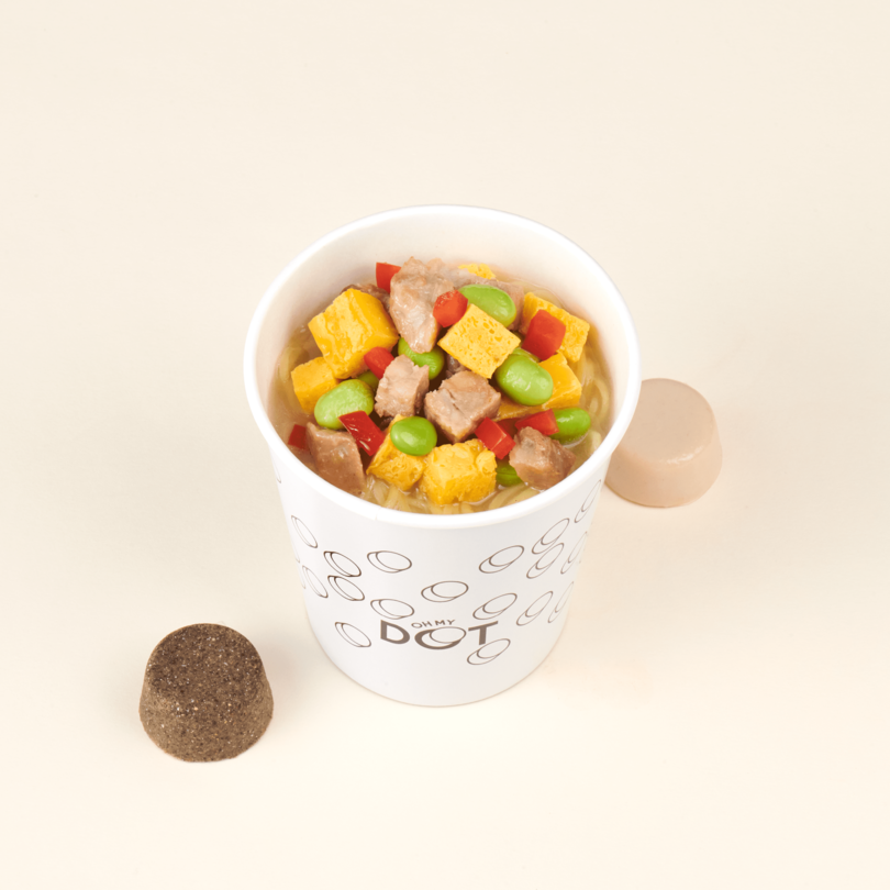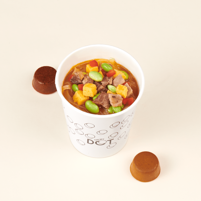 『oh my DOT』は“スープDOT”と呼ばれる独自形状のスープ10種類と3種類の麺を組み合わせて自分好みの美味しさを楽しめるスープヌードル専門店です。調理ロボット「N-Robo」を導入することで、膨大なメニューカスタマイズへの対応が可能となりました。また、最大の特徴である“スープDOT”は、野菜や魚介など素材の旨みを活かし、様々な素材を丁寧に調理して玉状に固めた当店オリジナルのスープの素で、味わえるスープで飲み切れます。飲み切れるスープにすることで、麺もスープも主役の、新感覚「スープヌードル」が誕生しました。