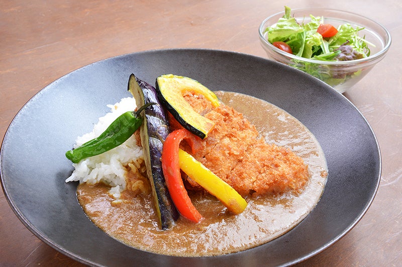 たっぷりの野菜と鶏ガラのブイヨンをベースにしたオリジナルカレー。とんかつとお野菜を添えたボリューム満点なランチです。
