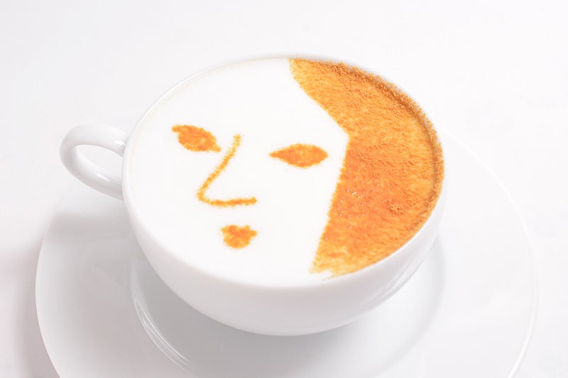 散策のあとは甘いキャラメルカプチーノでほっとひといき。遊び心のあるよーじやのロゴもポイント。