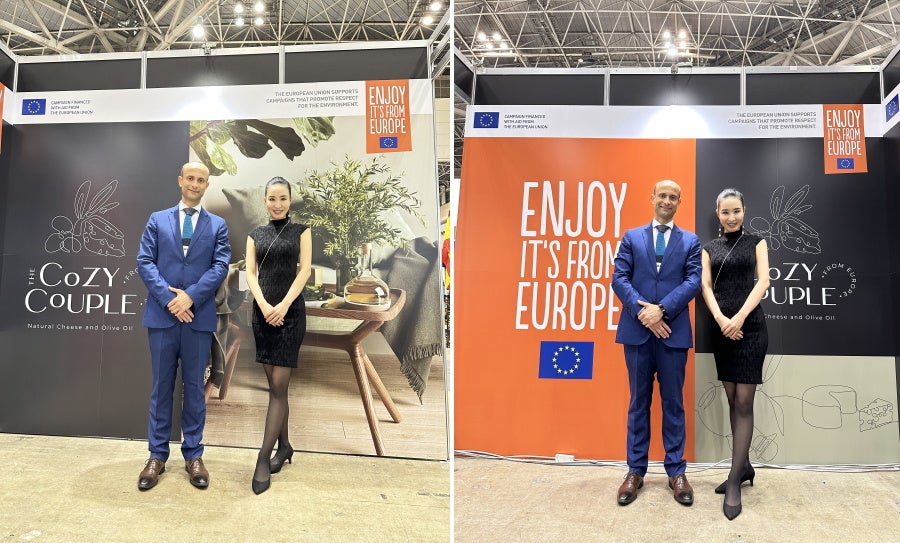 展示会の期間中、来場者は PDO サン・ジョルジェ・ PDO チーズ、ピコ・チーズ、 PDO トラス・オス・モンテスのオリーブオイル、 PDO アレンテージョ・インテリオルのオリーブオイルを試食することができ、それらの情報が記載された知識共有のためのチラシや冊子が配布されました。ザ・コージー・カップルキャンペーンのブースは活気に溢れ、来場者や専門業者がこれらのヨーロッパ産品のユニークな特徴や、それらに関連する伝統や品質認証について学ぶことに熱心でした。