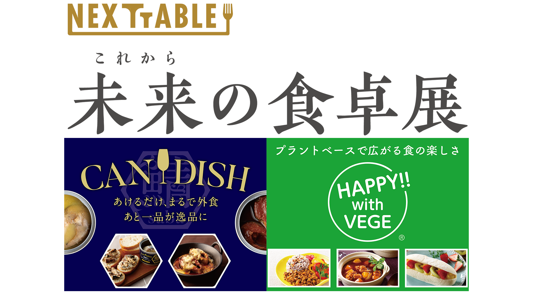 当社は、当イベントに出展し、新しい食スタイルや環境問題からくる食品事情などを背景に開発した商品、『HAPPY!! with VEGE®』と『CANDISH® saba』をご紹介します。プラントベースの商品『HAPPY!! with VEGE®』はプラントベースで広がる食の楽しさをご提案する人気の商品です。『CANDISH® saba』は鯖の缶詰商品で魚の骨もソースもおいしく食べられ、常温で長期保存可能なので食品ロス削減に貢献できると考えています。また、この商品は一般社団法人 未来の食卓が主催の「未来の食卓アワード2022 日本缶詰大賞 おさかな部門」にてグランプリを受賞しました。一般社団法人 未来の食卓も同展示会に出展し「未来の食卓アワード2022 日本缶詰大賞」の取り組みを紹介し、より深く当社商品の魅力をお伝えしていきます。