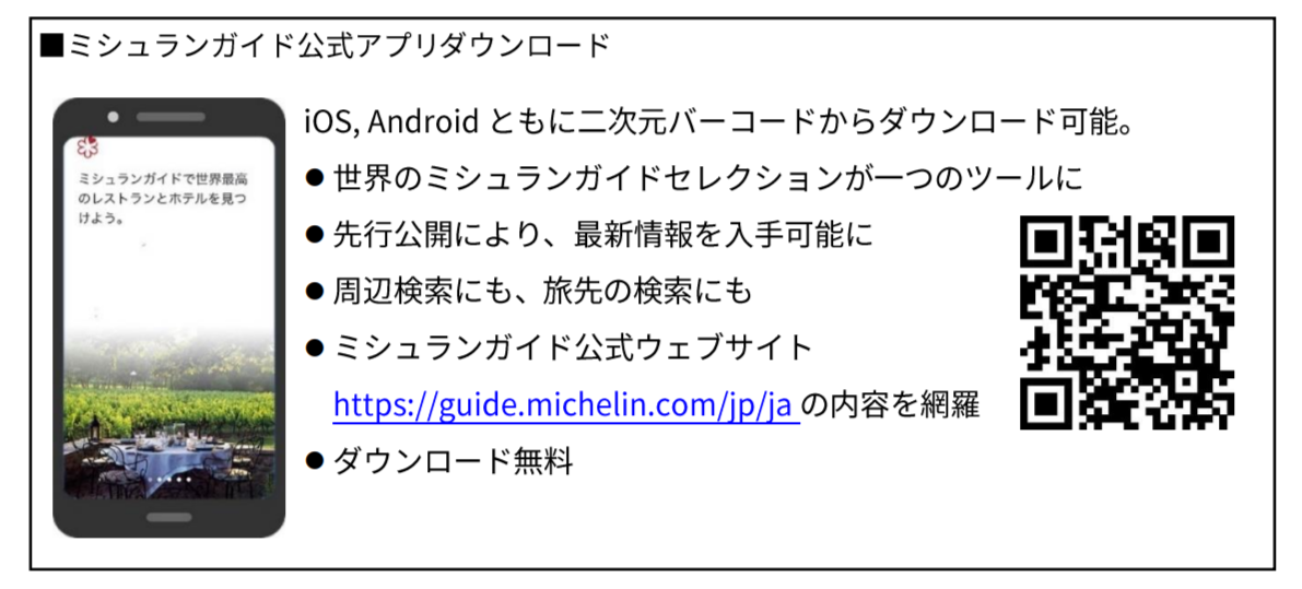 「インバウンドが急速に回復し、国内旅行も盛んになるゴールデンウィークを前に、ミシュランガイドの新たな取り組みをご紹介でき、大変嬉しく思います。モバイルアプリで最新情報を携えて、ミシュランガイドの新たな活用を始めてください。身近なレストランから旅行先の素晴らしい体験まで、一つのツールでご紹介します。持続可能なモビリティを提供するミシュランは、時代の声に応え、皆様のお出かけ前から、移動中、移動先の楽しみを今後も継続してお届けします」