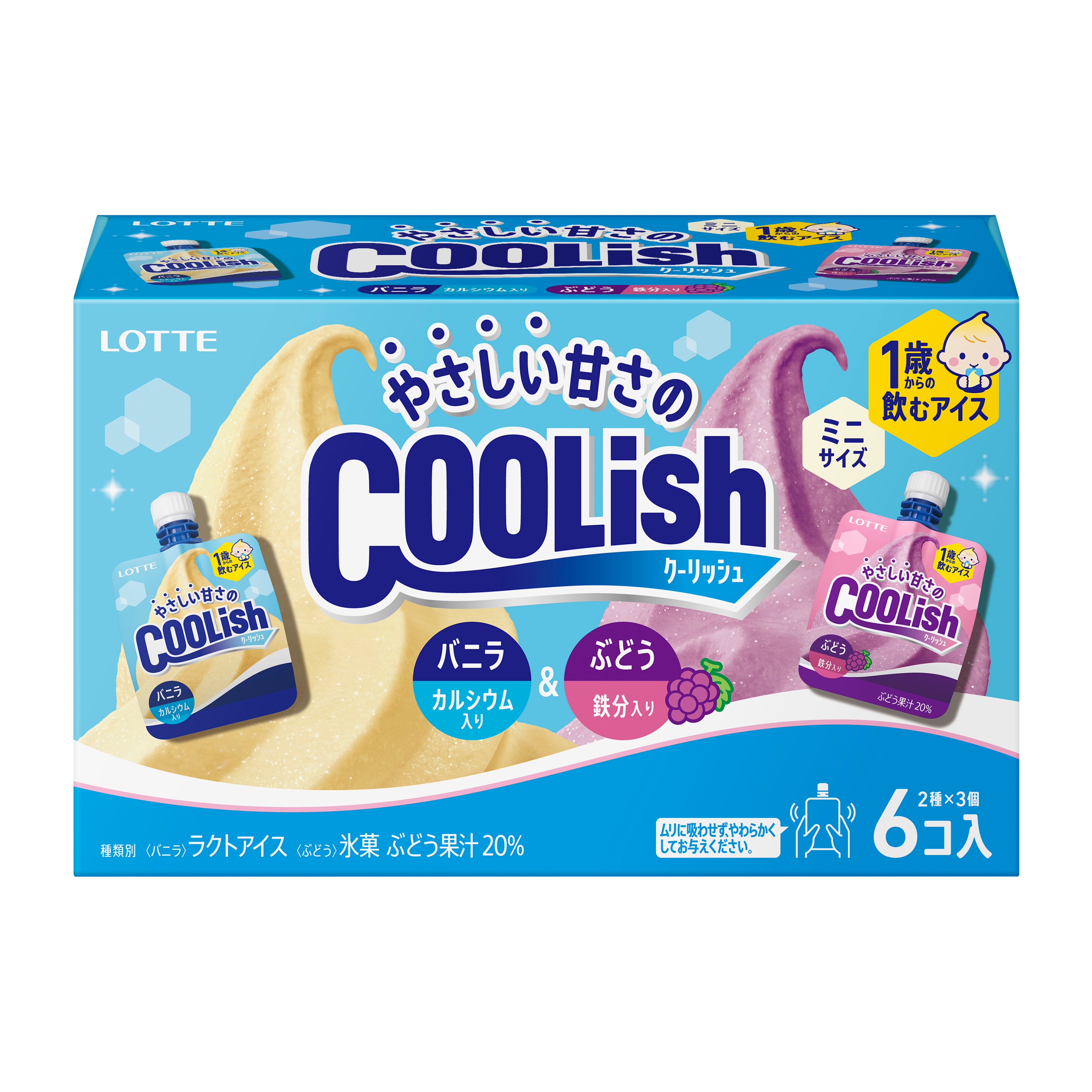 2023年3⽉27⽇(⽉)発売! 1歳から飲める、やさしい⽢さのクーリッシュです。カルシウム⼊りのバニラと、鉄分⼊りのぶどうの2種類が楽しめます。容量80mlのミニサイズが6個(2種×3個)⼊っています。