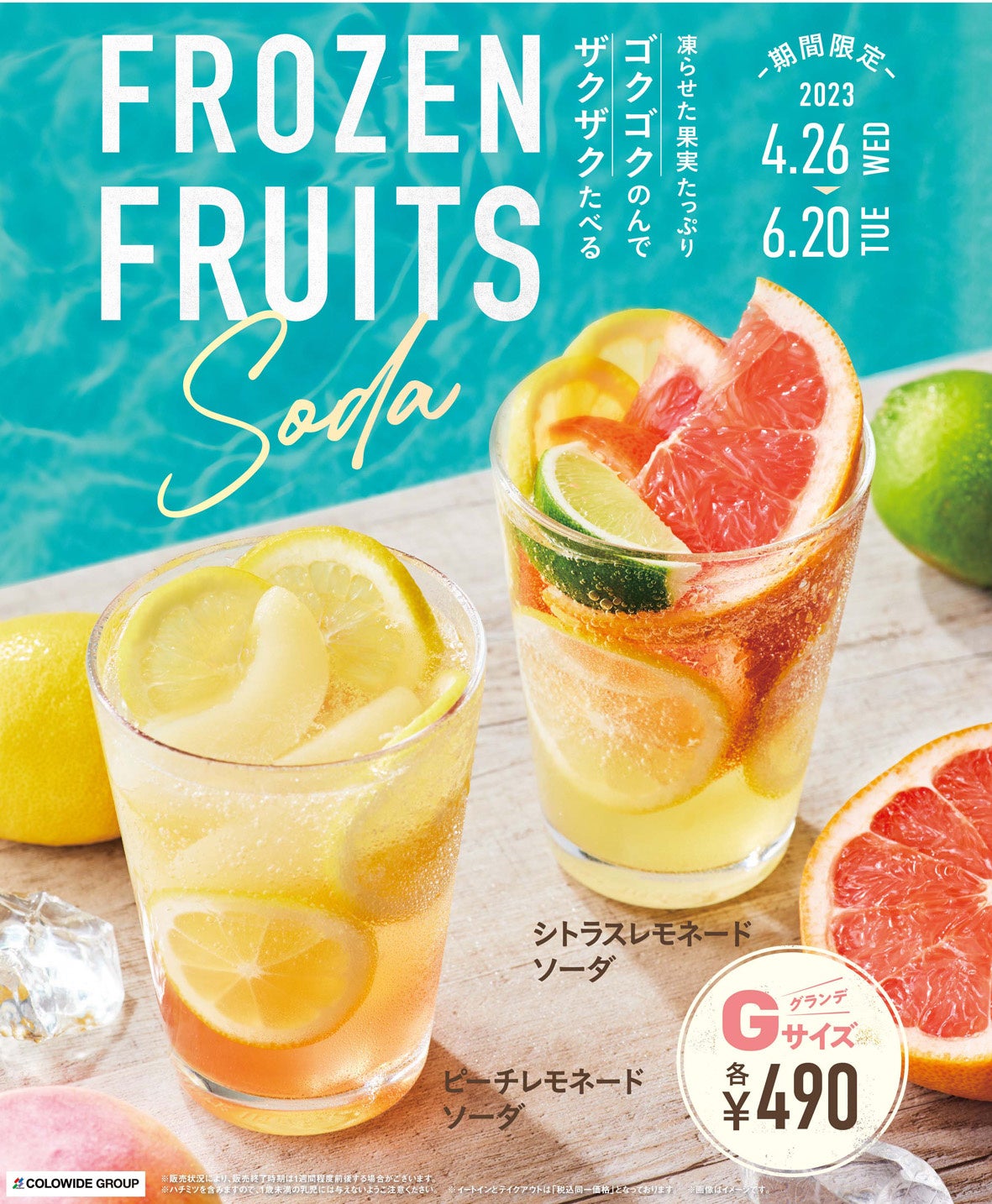昨年夏に発売し、同年のキャンペーンドリンクの中で一番高い出数となり、多くの方より「夏にぴったり」「また飲みたい」などの好評をいただいていたフローズンフルーツソーダが新たな味わいで帰ってきます。