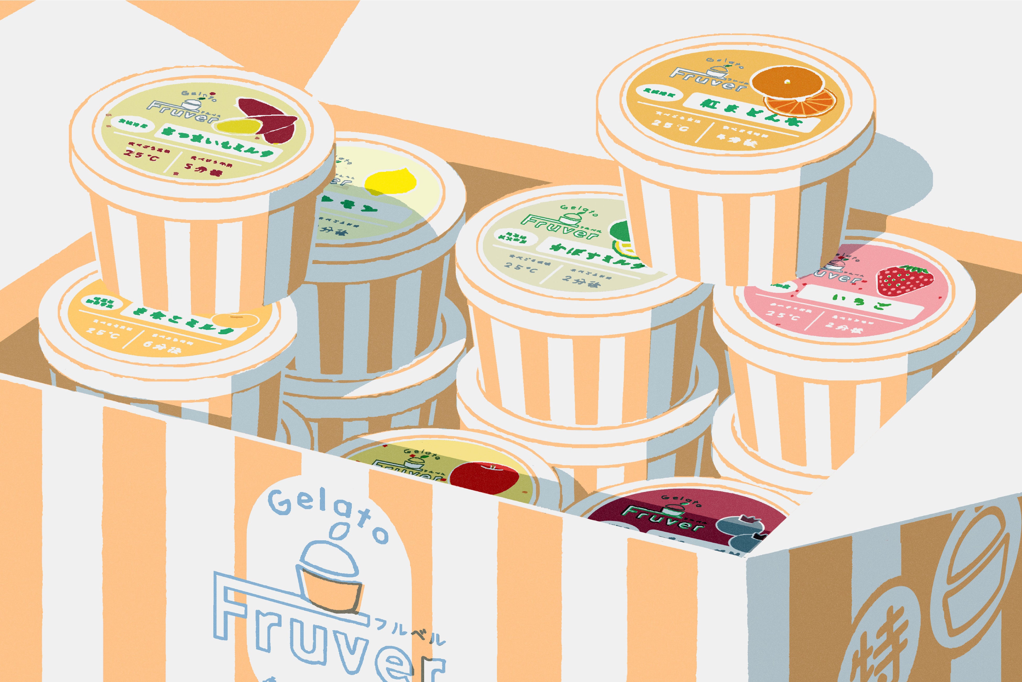 青果物の生産・流通の過程で、どうしても規格外品といわれるものが出てしまします。形が悪かったり、大きさが規格外なだけで、味に関しては、普通の商品と一切変わりません。むしろ、普通の規格の商品より大きく美味しいものもあるくらいです。そんな規格外の商品は一般的に出回ることはありません。こういった規格外の一部を、アップサイクルとして本商品「フルベルジェラート」にしています。