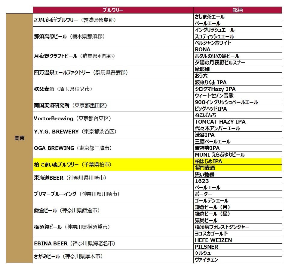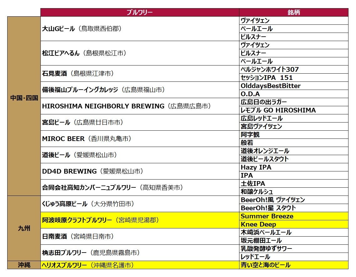 ※黄色い枠が今回の新規追加ブルワリー・銘柄です
