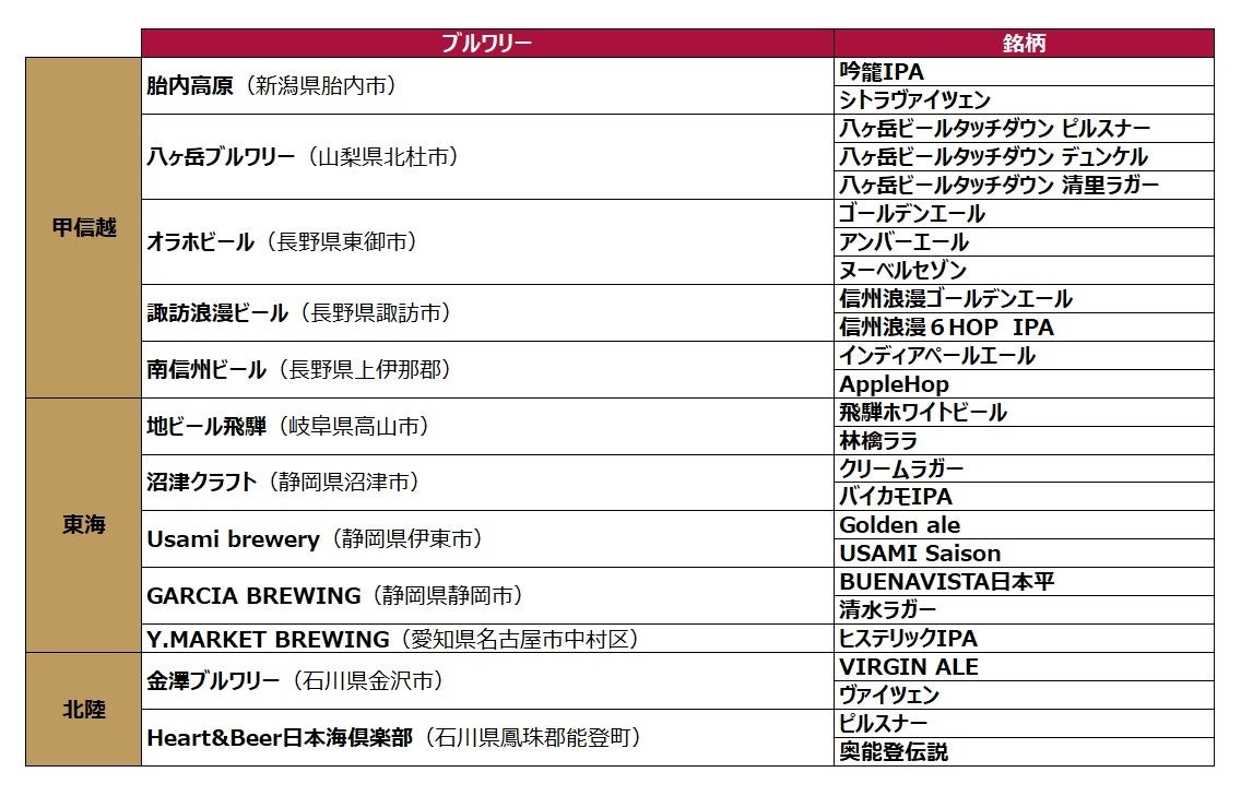※黄色い枠が今回の新規追加ブルワリー・銘柄です