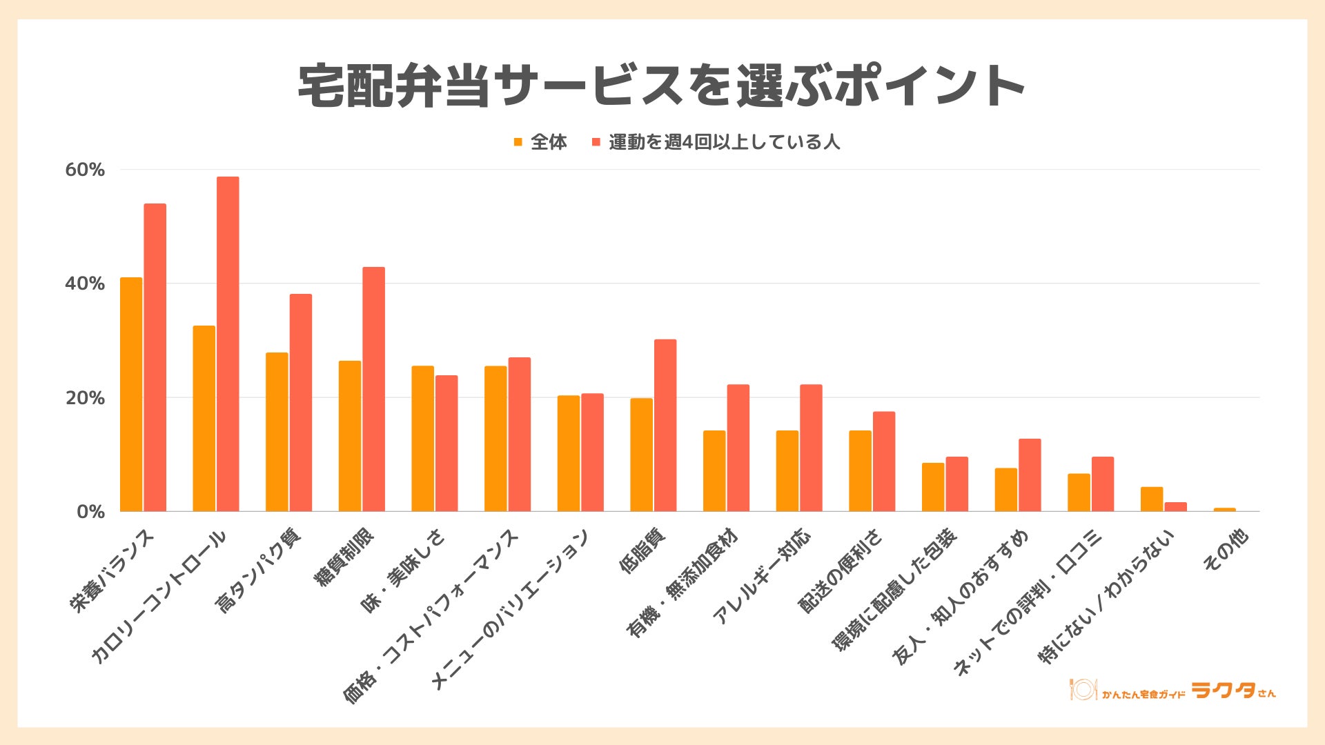 ■宅配弁当サービスを選ぶポイント 運動習慣のある人は「カロリー」を重視