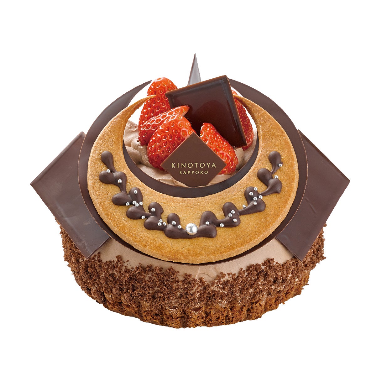 ふわふわのスポンジに生クリームとスライスイチゴをサンドして、口当たり軽やかな生チョコクリームで包みました。