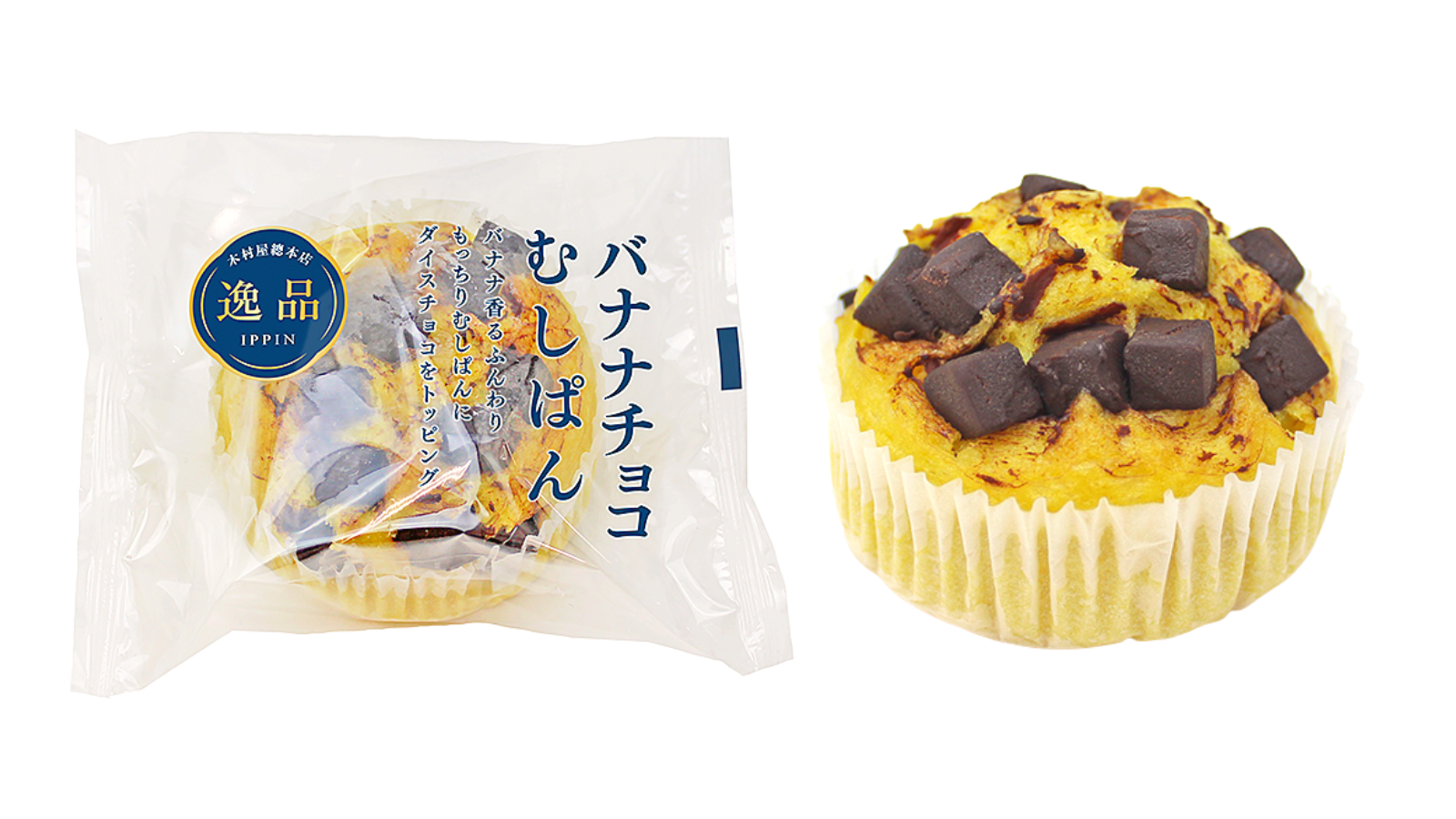バナナ味の生地に、ダイスチョコをたっぷりとのせて蒸し上げました。