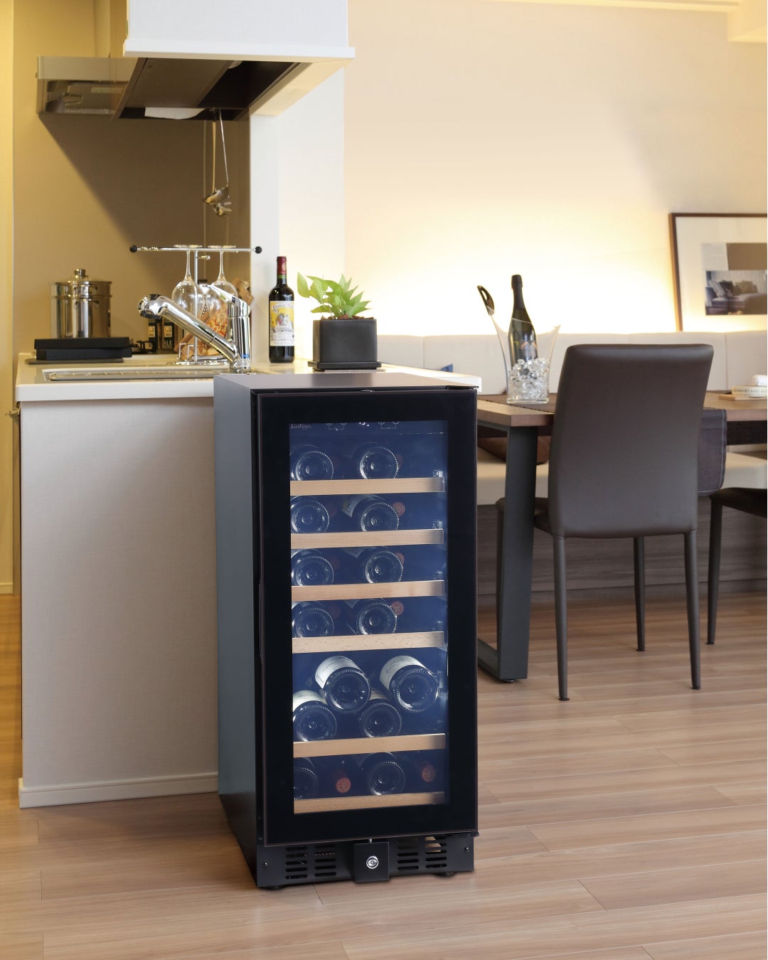 「ワインセラーは欲しいけど、スペースに限りがある」「コンパクトにストックワインを収納したい」「ラックを取り外して、セラー内を自由度高く使いたい」という方に、おすすめの小型ワインセラーです。