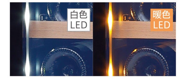 庫内前面の左右からLEDライトが立体的にボトルを照らします。