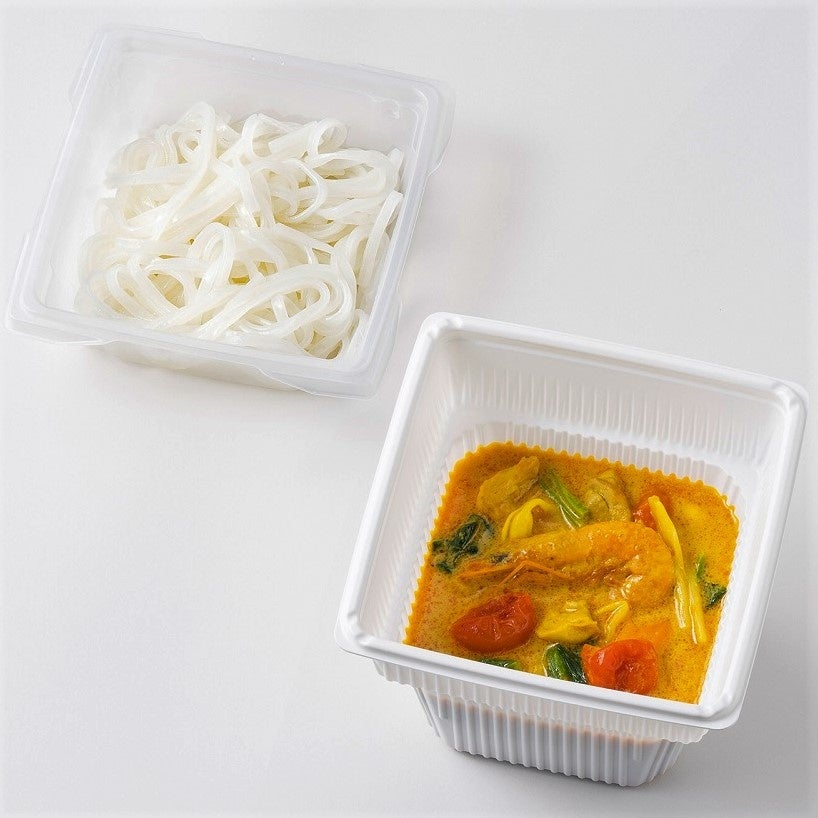 ワンプレートタイプのお弁当容器が主流ですが、当社は“2段式でセパレートタイプ”の容器を採用しています。セパレートタイプだからこそ、ご飯やフォー・スープをそれぞれ最適な調理時間で加熱することができ、一番おいしい状態でお召し上がりいただけることを実現しました。