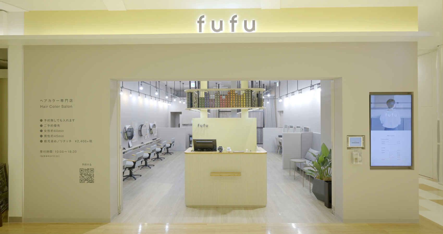 同社はヘアカラーに特化することで、プロによるクオリティの高い施術を、来店からシャンプー完了まで60分という短時間で提供し、リーズナブルな価格で提供することで事業を拡大し、業界トップクラスの地位を築いています。fufuに通うお客様は、買い物の合間や仕事帰りなどの日常生活の中で、高品質なヘアカラーを受けることができます。この品質の高さ、利便性などから定期的に来店されるお客様が多く、毎日をにこやかに過ごすためのメンテナンス空間となっています。