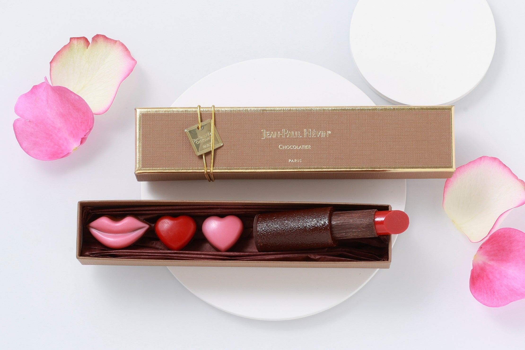 職人の手によって精巧に作られたチョコレート細工の口紅と、リップとハートモチーフのショコラの詰合せ。この期間だけの限定商品です。