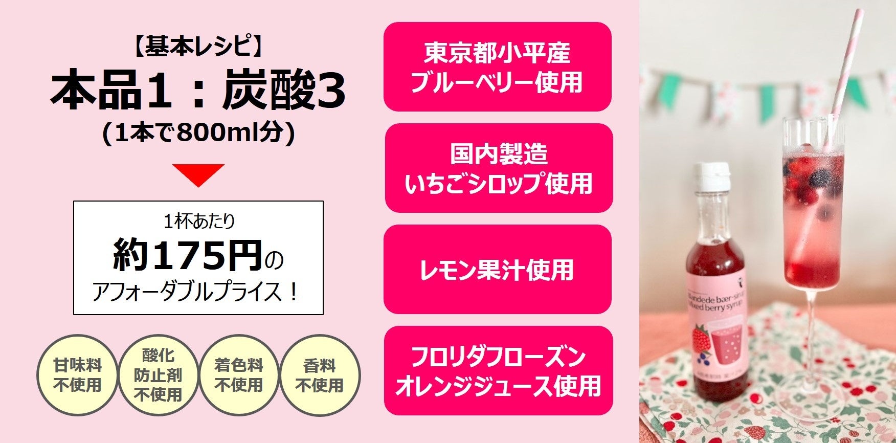 2023年4月下旬より、昨年6月に発売し、好評をいただいた日本オリジナル商品「クラフトコーラシロップ」「レモネードシロップ」のシロップシリーズの最新作として、「ミックスベリーシロップ」の販売を開始します。ブルーベリー栽培発祥の地、東京都小平産のブルーベリーをはじめ、自然の美味しさをしっかり堪能いただける仕上がりとなっています。シンプルに炭酸で割って、そして、ひと手間アレンジを加えて、お楽しみください。