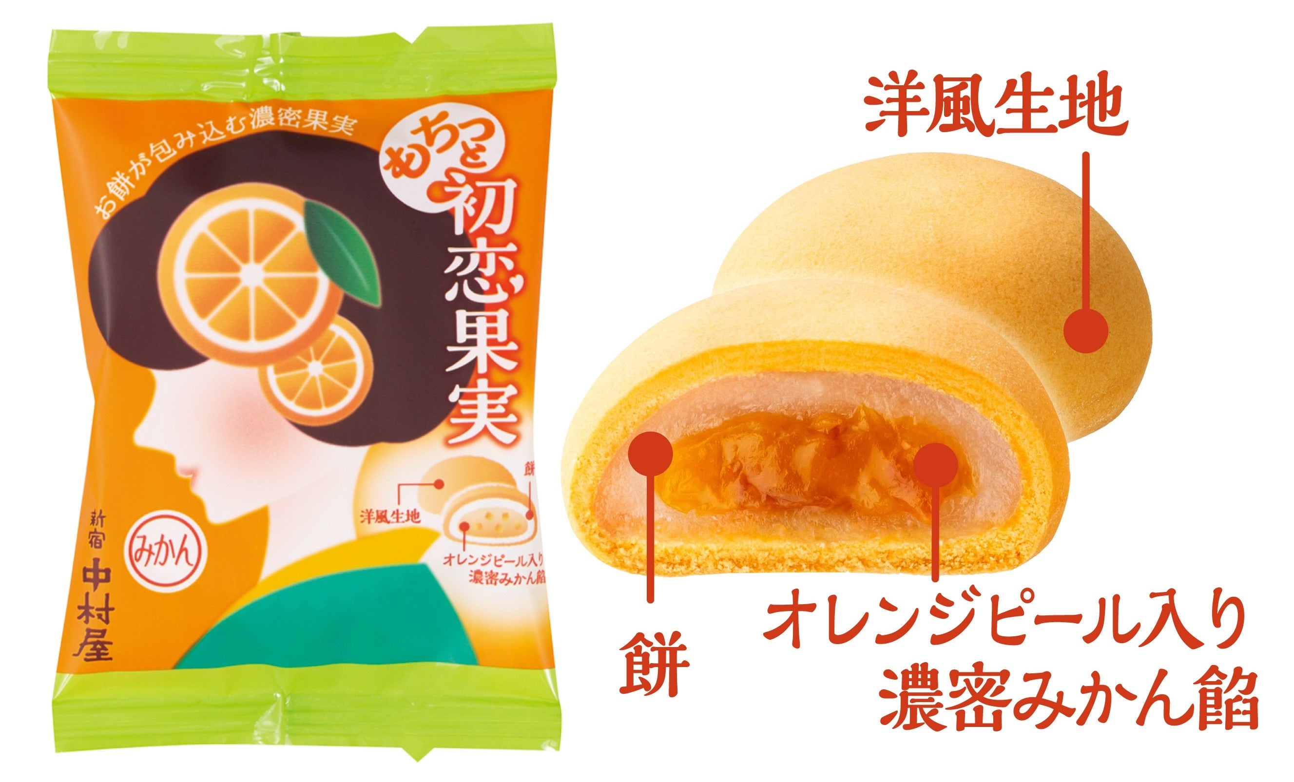 ■商品説明:温州みかん果汁を使用した、オレンジピール入りの濃密なみかん餡をお餅で包み、さらにしっとりした洋風生地で包んで焼き上げました。