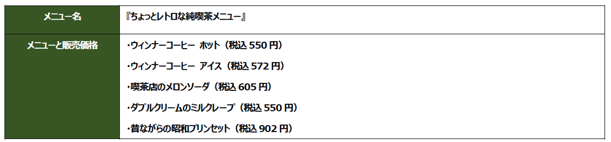 ●併設の喫茶コーナーにて提供の『ちょっとレトロな純喫茶メニュー』概要